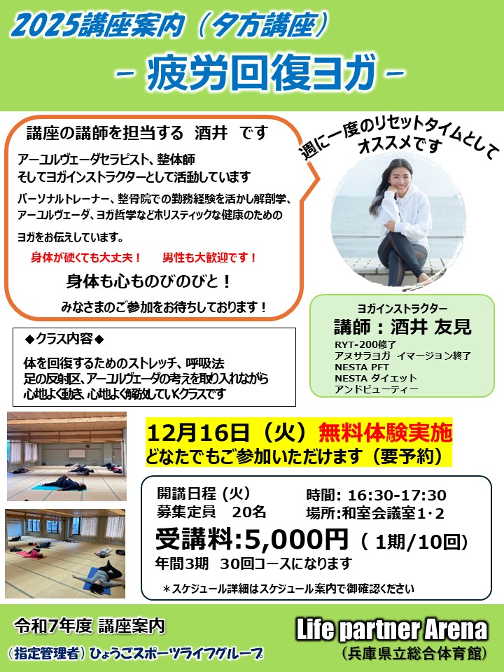 12/16 「疲労回復ヨガ」無料体験会開催のお知らせ