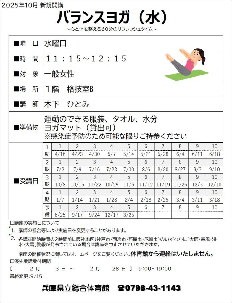 水曜日 11:15~12:15 格技室Bにて開催いたします。