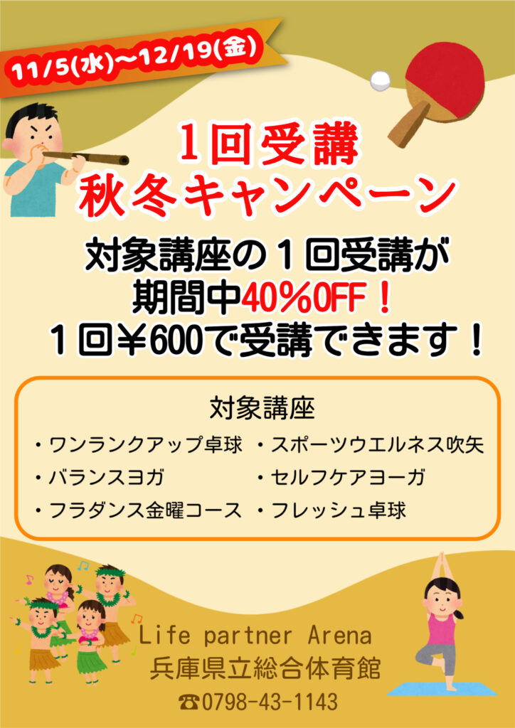 『1回受講 秋冬キャンペーン』開催のお知らせ