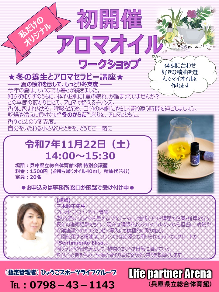 【アロマオイルワークショップ】11月22日(土)初開催のお知らせ